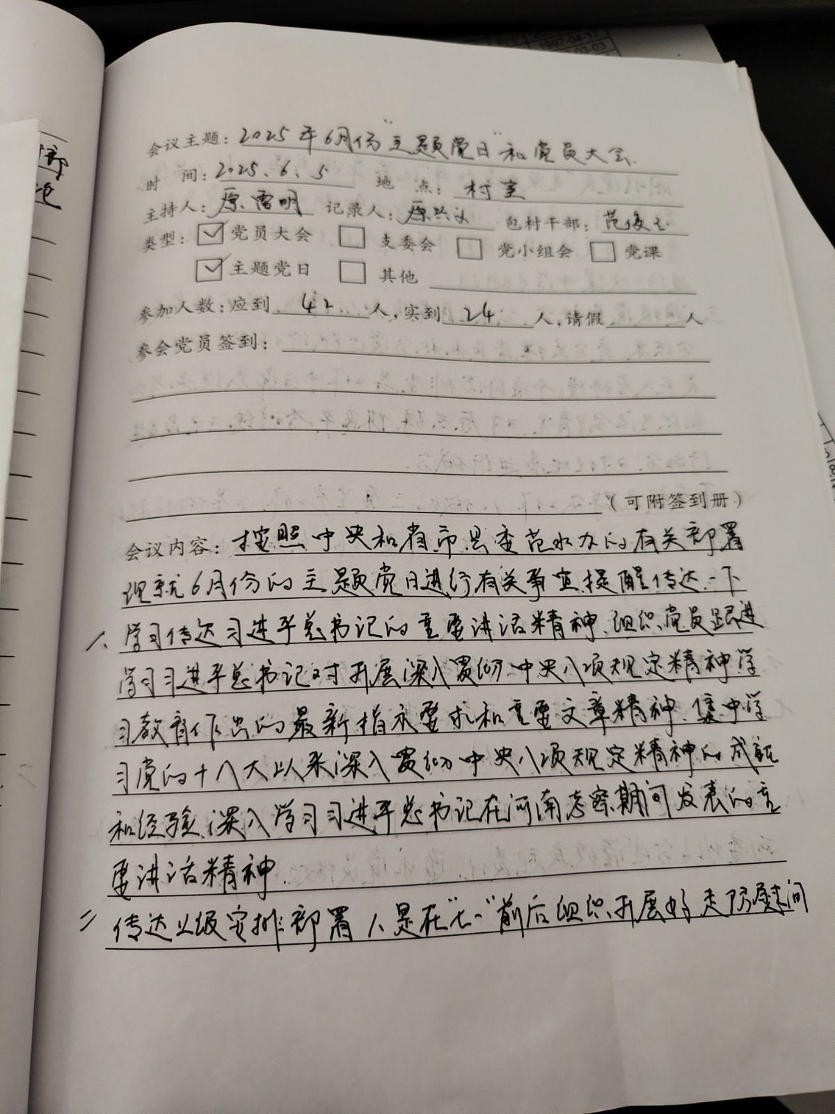 6月份主题党日和党员大会