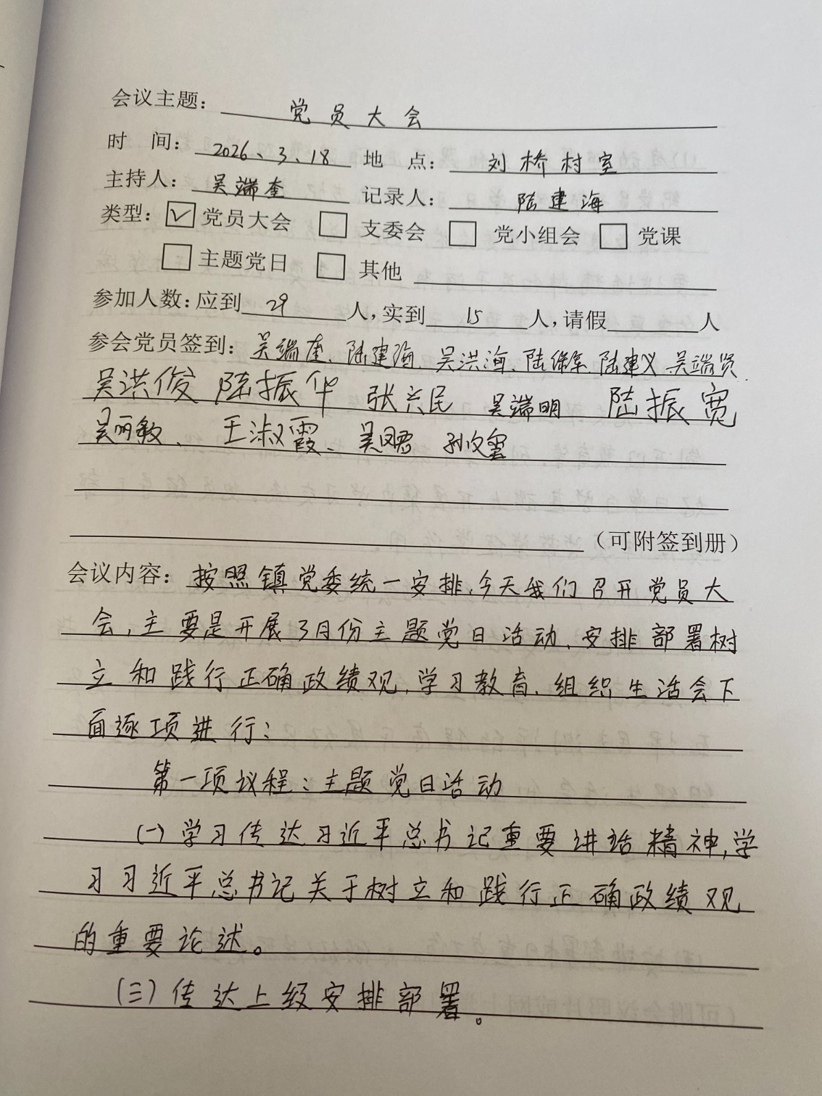 刘桥村2026年3月党员活动